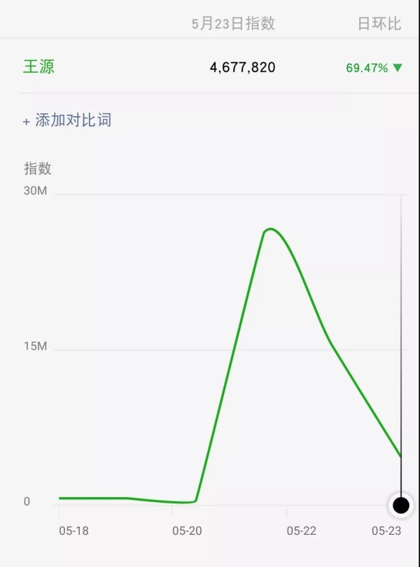 5月23日及其之后属于危机降温期,舆论能量降低,大众关注度迅速下降。在快速消费的时代,议题更新速度快,23日起,有关“王源吸烟”的热搜基本消失,自媒体文章也迅速减少。