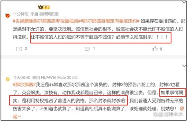 网传那尔那茜高考定向委培违约 娱乐圈特权争议再起鹿晗删博引热议,关晓彤新剧宣传风波再起