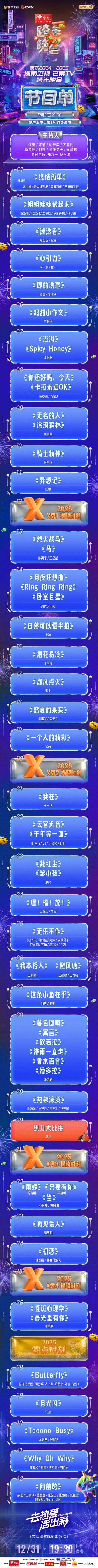 2025湖南卫视芒果跨年演唱晚会嘉宾节目单来袭:明星助阵!