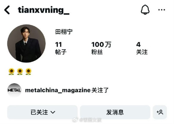 #田栩宁ins粉丝数破100w#田栩宁很火很安心呀,是谁还不知道ins已破百w粉丝了?柠檬水很棒