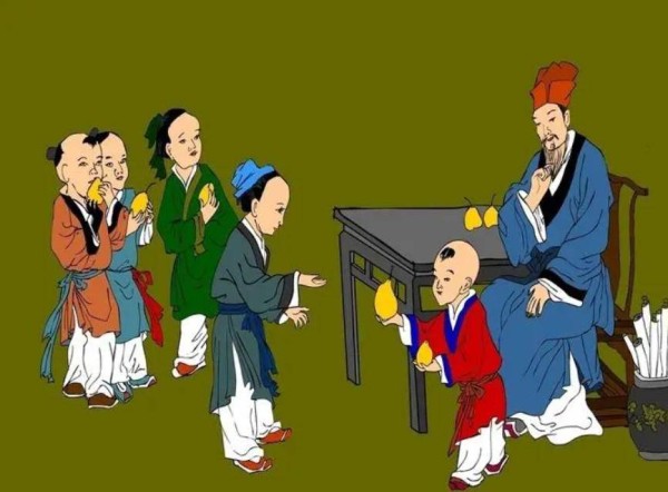 《后汉书·孔融传》记载了孔融一生的事迹,尤其是他年幼时的“让梨”故事,这成了他尊老爱幼、重道孝的象征。孔融是孔子的二十世孙,从小受到儒家教育,因此展现出了不凡的才智。四岁时,他和哥哥们一起吃梨,看到较小的孩子,他主动把小的让给别人。当大人问起原因时,他回答:“我小儿,法当取小者。”这一行为,成了他温文尔雅的象征,流传至今。