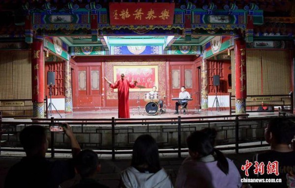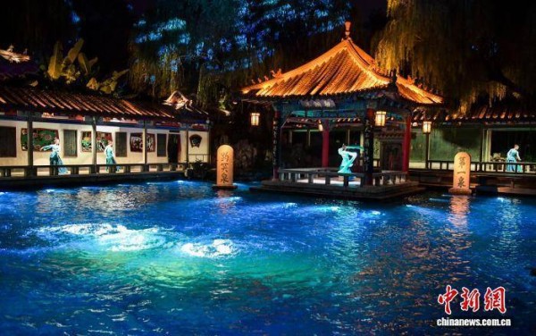 图为演员在济南趵突泉畔表演节目。中新社记者 张勇 摄