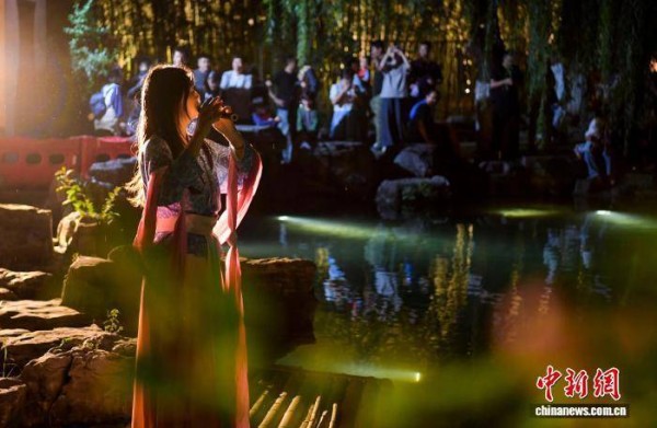 图为演员在济南趵突泉畔表演“清照词宗”。中新社记者 张勇 摄
