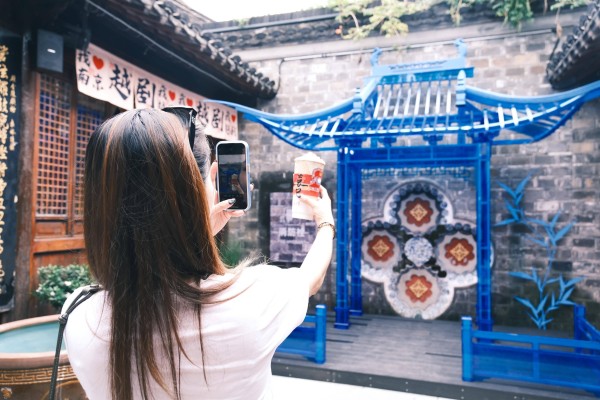 继续往里走,二进院的“喜越金陵”品牌奶茶已经卖出上百杯,4名工作人员正在有条不紊地忙着。“生意很不错,像‘小生椰椰’‘旦愿人长久’‘水袖飘飘’‘奶盖老生’等,大家喝的是奶茶,品的是越剧。”工作人员笑着说。