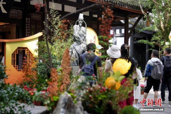 10月2日,四川成都,游客在杜甫草堂参观。中新社记者 安源 摄