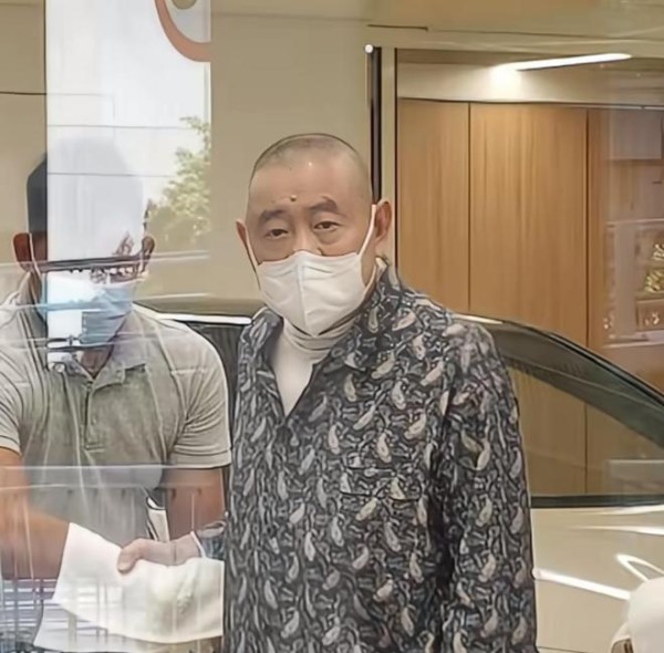 一行人先是乘车到达某地,然后刘銮雄下车步行前往某国产车店,行走在人行道上,刘銮雄身边围满了保镖和工作人员,刘銮雄走在正中间气场全开。
