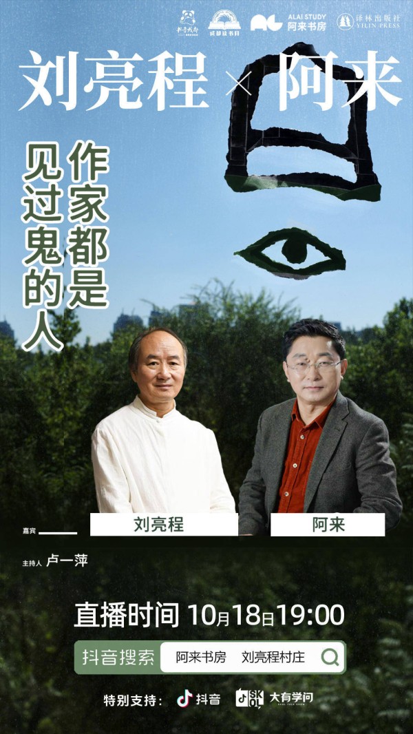天府书展期间,一大拨名家将亮相分享。10月18日晚,刘亮程将携其新作《长命》来到阿来书房做一场新书分享会。在这场分享会上,作家阿来将受邀出席,与刘亮程展开一场文学对谈。两位都是茅奖获得者,他们的交流将会迸发怎样的火花,令人期待。封面新闻客户端和“阿来书房”抖音账号,将以“刘亮程对话阿来:作家都是见过鬼的人”为主题,全程视频直播这场对谈活动。