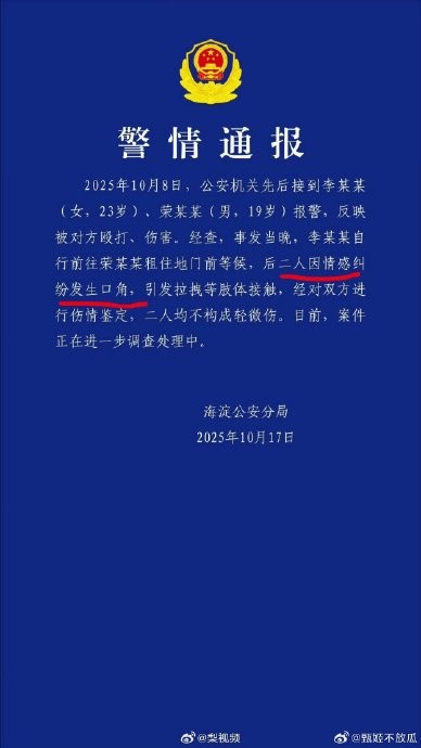 内娱最小年纪喜提蓝底白字,被警方锤恋情第一人,又是谁的一辈子。再看荣梓杉工作室声明搞笑不。#警方通报荣梓杉李禹熹纠纷#.#荣某某李某某因情感纠纷引发拉拽#