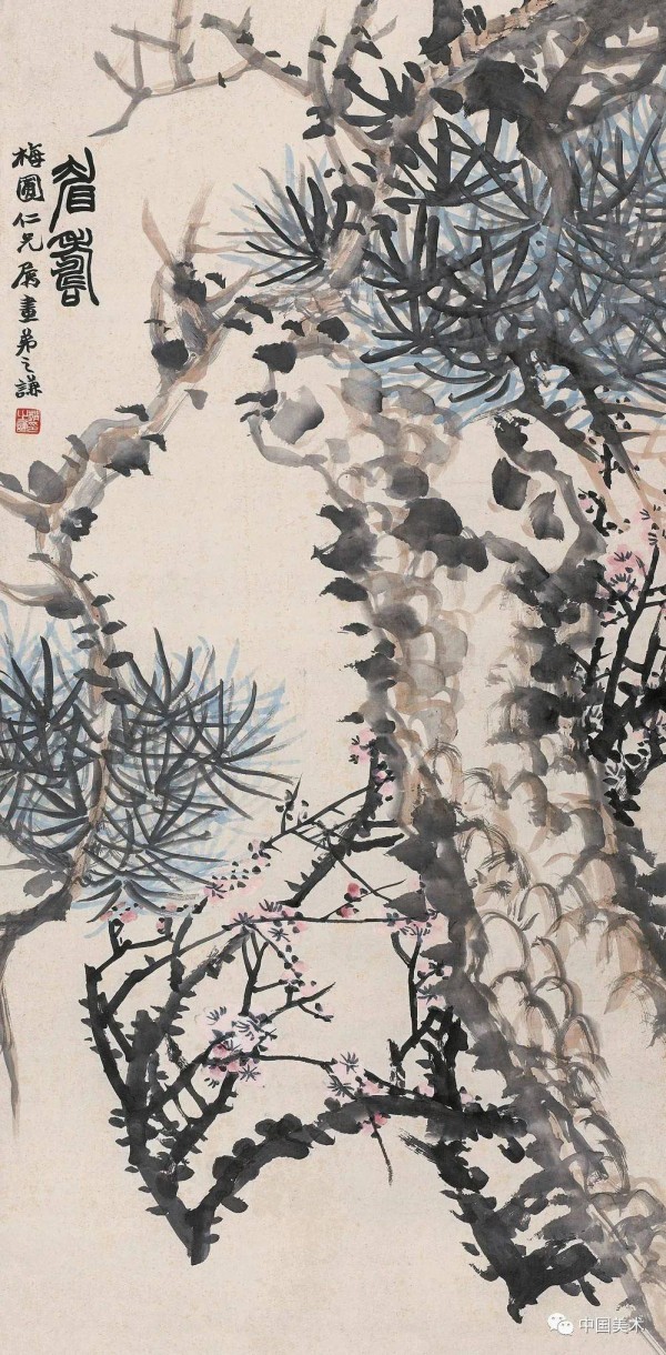 画则由近人任渭长而上溯南田、徐青藤、陈白阳,更以篆籀草行之法入画,自创雄迈清隽之一代新风,为海派艺术开辟了广阔的天地。