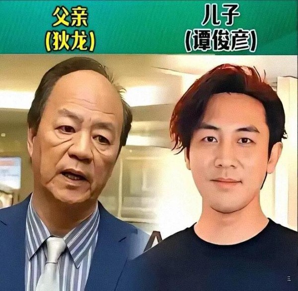 狄龙与儿子谭俊彦,据说儿子小时候常因父亲狄龙在片场杀人的场景而受到惊吓。为了远离这些,他上大学选择去加拿大学习美术设计,无论面相还是气质,看上去似乎也不是同一类。