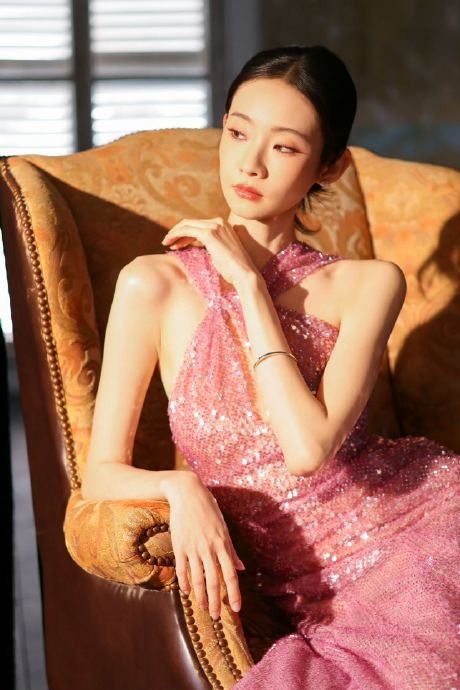 张艺凡粉色亮片长裙展天鹅颈细腰惊艳