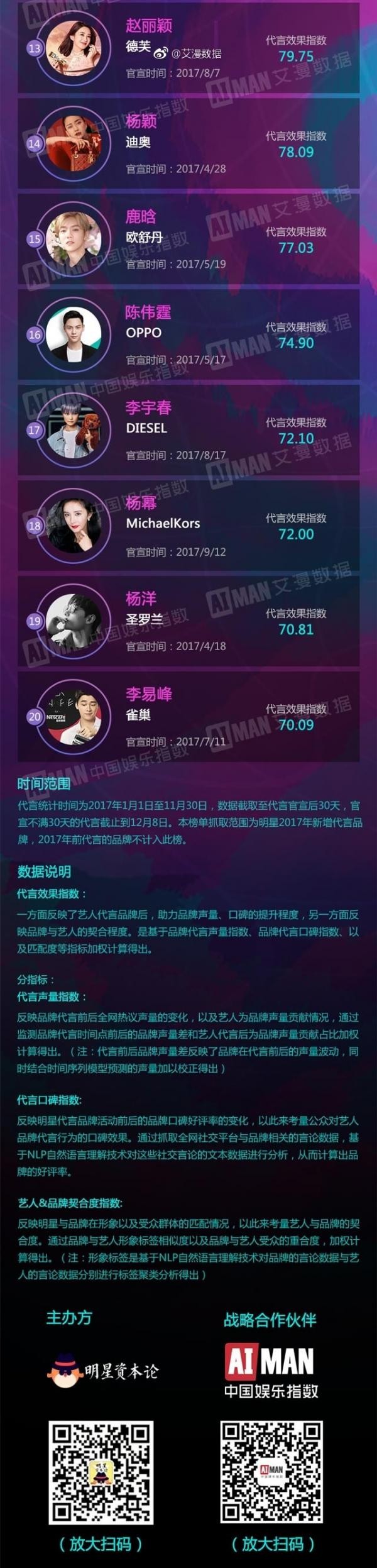 【艾漫数据+明星资本论】2017明星代言品牌效果榜总榜【艾漫数据+明星资本论】2017明星代言品牌效果榜总榜详解~