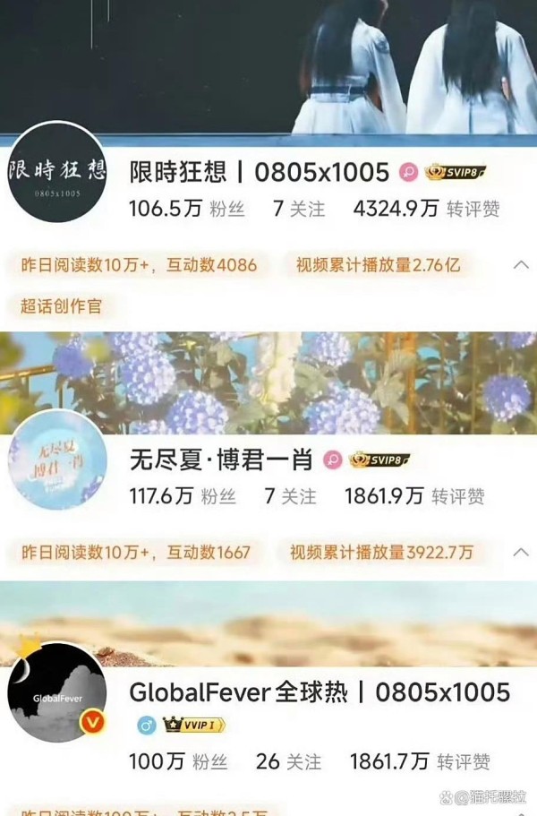 博君一肖的统治力仍在延续。三位百万站姐是这种影响力的直接体现。CP可以不营业,粉丝仍在记录。