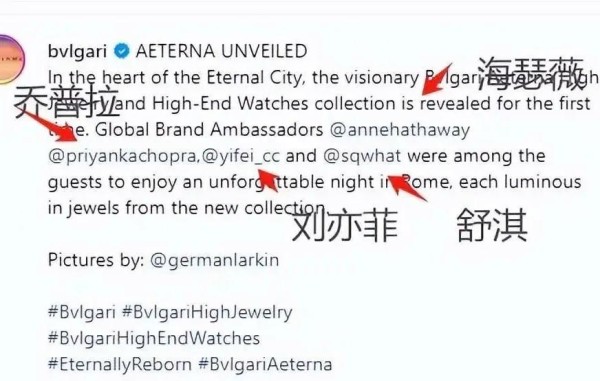 而且在品牌方发布的四张图片中,除了第一张是三人合照外,后面三张都是两两合照,其中也没有森星的身影。可见,宝格丽还是蛮重视舒淇的。对此,网友也直呼:“宝格丽这个做法简直太快人心”。