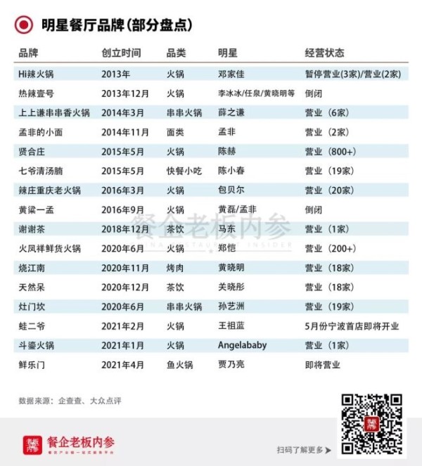 据说,2020年,很多明星主动咨询和寻找适合的餐饮行业,他们首选的是标准化较强、可以快速复制“跑起来”的品类,如火锅、烧烤、茶饮等,再选择专业的团队,供应链和管理也跟得上。