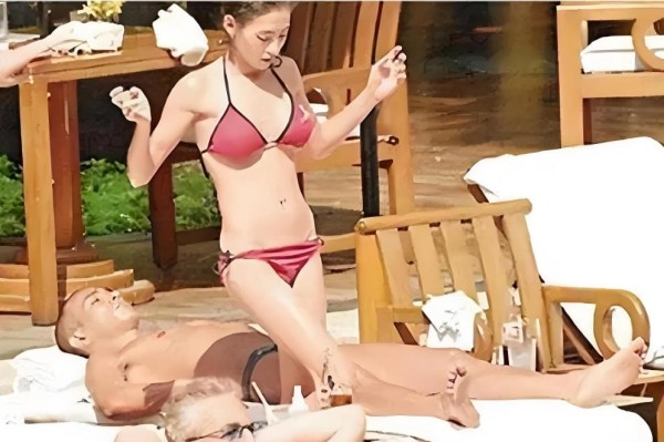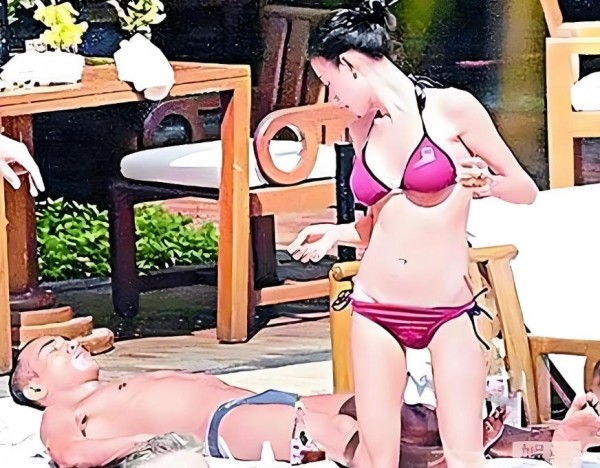 2003 年的泰国曼谷,午后阳光把酒店泳池晒得暖意融融,张柏芝穿着一身桃红色比基尼站在池边,手里拿着防晒油,笑着对身边的陈小春说:“那我给你涂防晒油。”