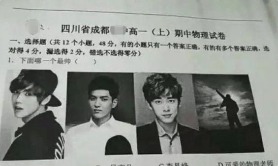 明星出现在学生试卷中,追星的学生很开心,不追星的学生很发愁