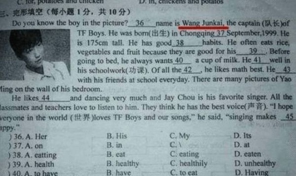 明星成试卷上的“常客”,部分学生为追星分数也不要