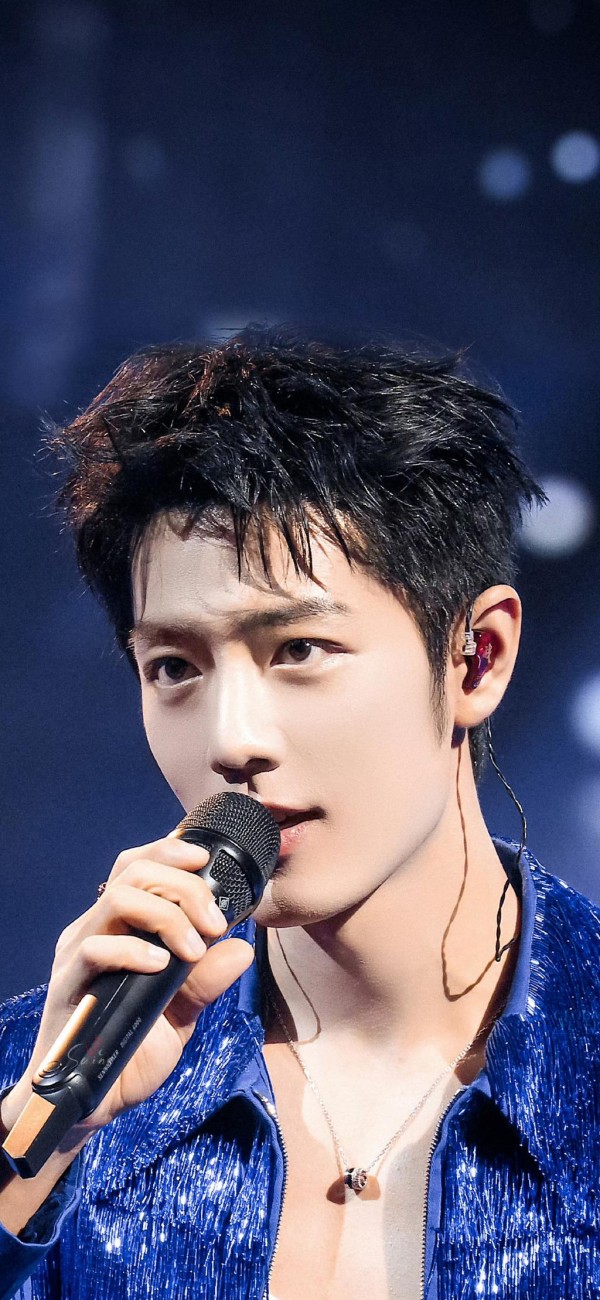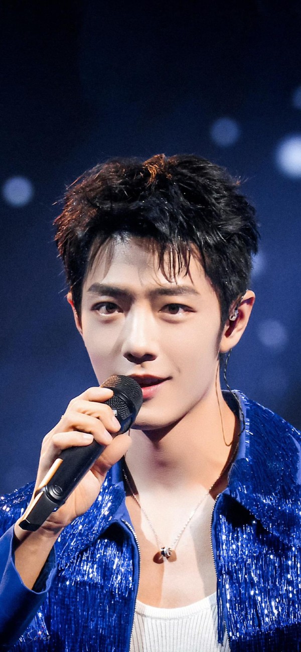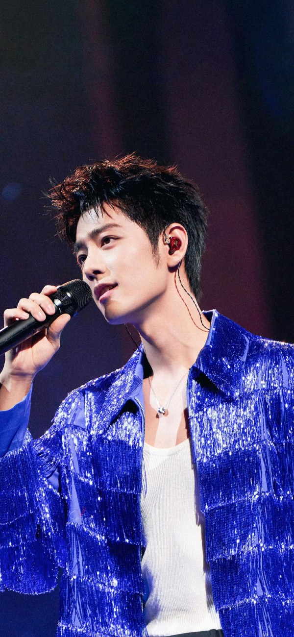 肖战作为嘉宾出席某品牌晚会,坐在台下观看演出。