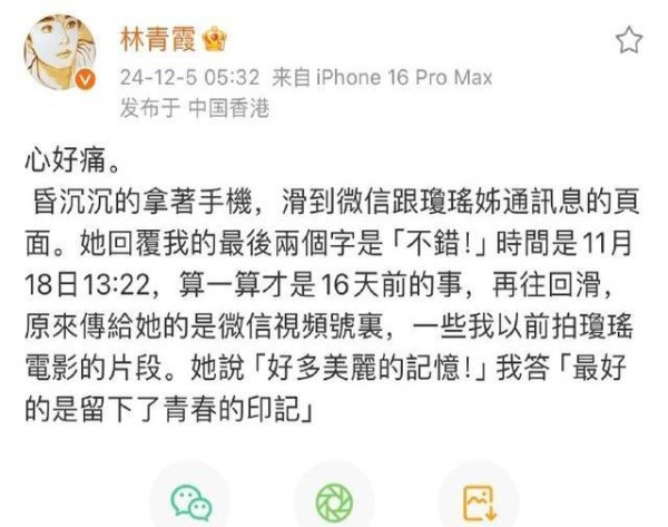 林青霞发文悼念琼瑶,心好痛,琼瑶是她的贵人也是她的写作老师