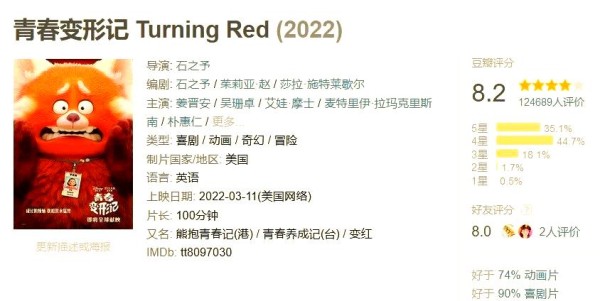 影片在豆瓣和烂番茄上获得了高分,反映了其幽默和温情并济的风格。皮克斯新片《青春变形记》上线后,在豆瓣上迅速获得8.2的高分,同时在烂番茄上也达到了95%的新鲜度。这部影片不仅继承了皮克斯一贯的幽默与萌趣,更在轻松的情节中蕴含着深层的勇气与温情,让人在欢笑中思考,感悟成长的真谛。
