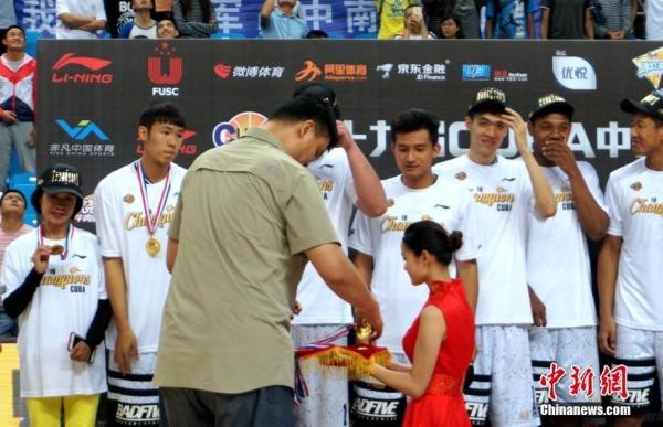 第十九届CUBA争冠赛,中国篮协主席姚明到场观看了比赛,并为冠军颁奖。 中新网 图