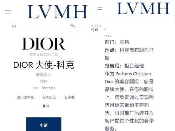 接下来,我们还有“临时工大使”这一层级。在巴黎奥运会前,迪奥曾签约了近20位运动员作为品牌大使,旨在利用奥运会的短期营销效应。然而,这种短期合约并不等同于真正的大使角色,它们更类似于一种零工合作模式的代言。此外,迪奥的化妆品销售岗位也被称为“大使”,这在他们的招聘广告中并不罕见。