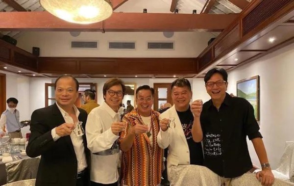 让人意外的是,谭咏麟的生日宴上,竟然见到这三老哥一块合影照,嘴角都挂着笑