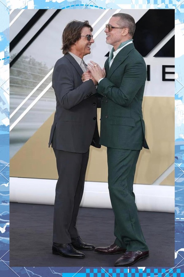 两人在红毯上的互动被摄像机捕捉并传播,一些细节引发了关于他们之间真实关系的讨论。这场红毯盛宴是在伦敦举行的电影《F1》全球首映礼上。当晚,星光璀璨,皮特身着一套祖母绿西装,搭配薄荷绿围巾,墨镜遮面,仿佛刚从法国高级男模的舞台上走下。而阿汤哥则身着灰色西装,配上他标志性的飞行员墨镜,脸上洋溢着熟悉的职业微笑——“Mission: Impossible微笑”。