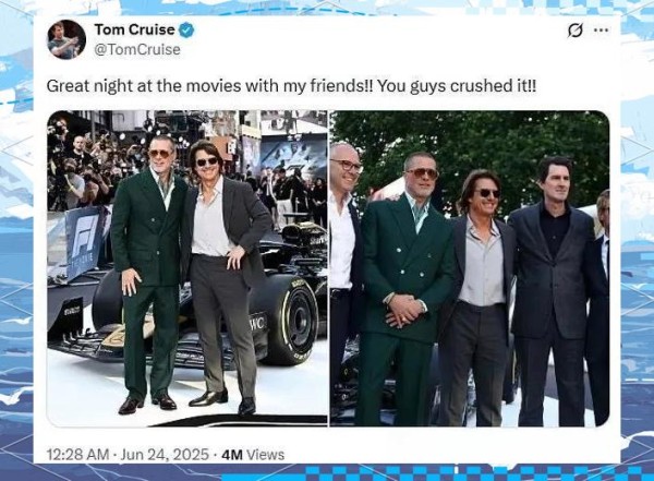 阿汤哥与布拉德·皮特在伦敦F1电影首映礼上的同框,吸引了全球的关注,引发粉丝对于两人关系的不同解读。近日,一场令人瞩目的红毯盛宴在伦敦F1电影首映礼上上演。阿汤哥与布拉德·皮特,这两位好莱坞顶级巨星,在时隔24年后再次携手亮相,引发了全球粉丝的狂热追捧。他们的同框画面堪称“世纪合体”,成为众人瞩目的焦点。