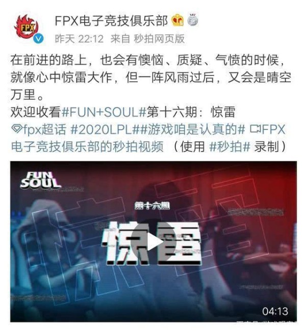 在FPX之前对阵EDG的比赛中的第二局,由于EDG前期经济优势过大,最后一波结束掉了比赛,而人头数更是来到了19比2,fpx的队员们有点不在状态,而在第二局结束后,队员们回到了休息室。本以为在休息室,大家会商讨一下下一局的战术打法,不过在13号晚间,fpx俱乐部微博也是发布了一条纪录片,那就是在休息期间,队员们之间争吵了起来。
