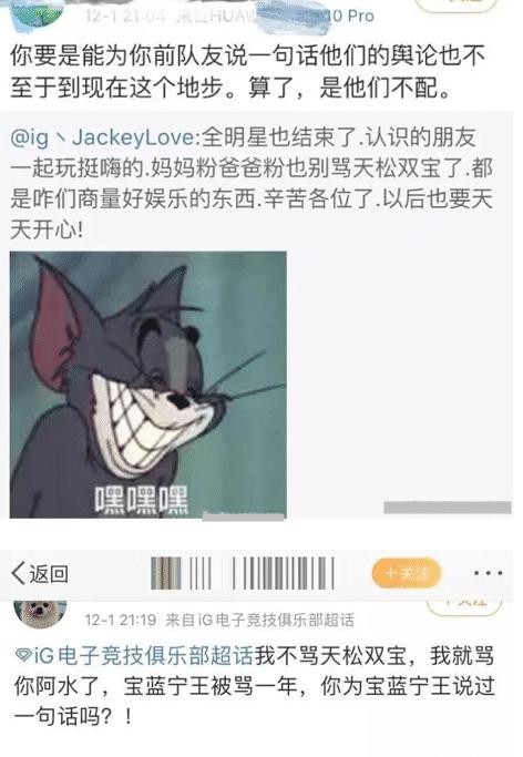 不过最有意思是rookie也帮忙说好话,不过却没人敢喷,可能是怕rookie被喷离开IG战队吧!如果这次jkl没有离开,估计宝蓝粉会哭着让他留下带宝蓝,然后人走茶凉,妈粉失去理智只能见人就喷!对此大家怎么看待宝蓝牵扯的这两件事!欢迎留言讨论!