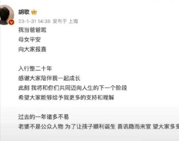 娱乐圈的新闻总是层出不穷,尤其是胡歌宣布结婚并迎来女儿的消息,一时间引发了广泛关注。大家原本以为他会选择一个圈内的明星妻子,然而,当他的妻子黄曦宁的身份曝光后,各种各样的猜测和传闻便开始蔓延。有人说她是高学历,有人认为她是白富美,甚至还传出她和胡歌结婚的一些细节。