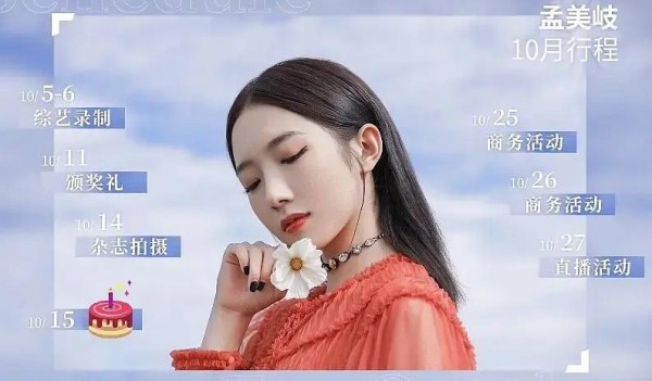我们也就只能参考她的十月行程来看了,她的行程类型是比较多的。其中有综艺录制,也有颁奖礼,也有像杂志拍摄这种时尚活动。