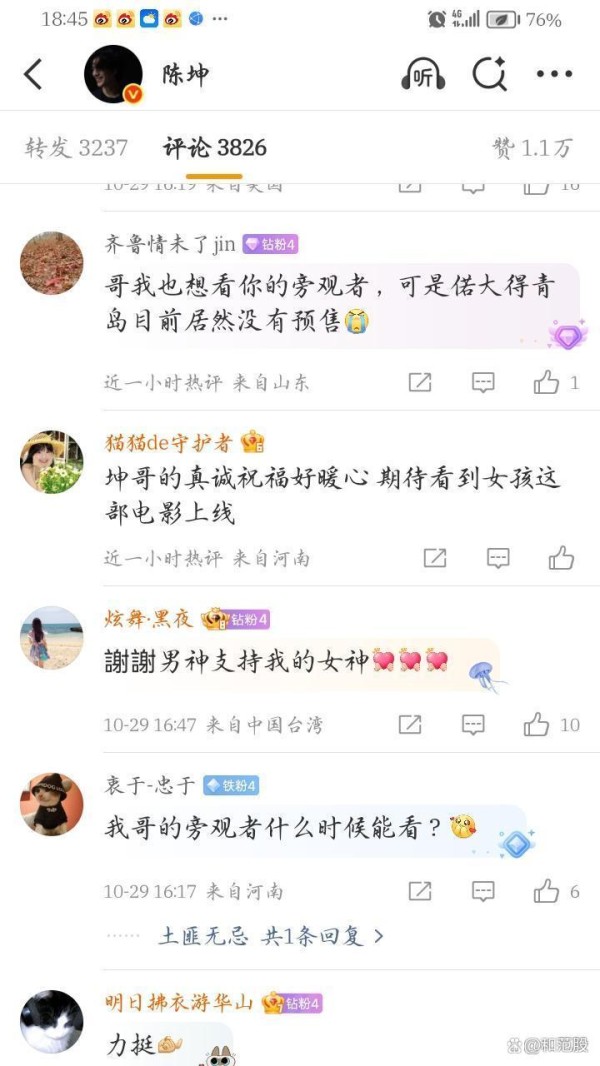 在明星光环加持的闪亮娱乐圈里,世事云波诡谲,翻脸无情是常态。这样的纯粹友情,甚至带着点生活中和老友互相暖心加油的烟火气,实属难得。也难怪粉丝们看了陈坤的举动,有种自己也被搬暖的“幻觉”,都在留言里炸了。