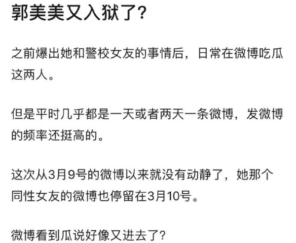 郭美美又出事了?网友曝郭美美与狱警女友被关押,疑似因为卖假药