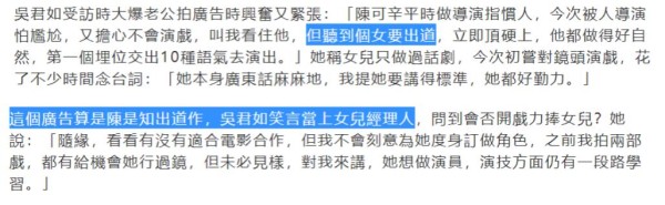 吴君如和陈可辛一家三口在广告片中高调出镜,并且正式宣布女儿陈是知出道,这对娱乐圈来说无疑是个大事件。