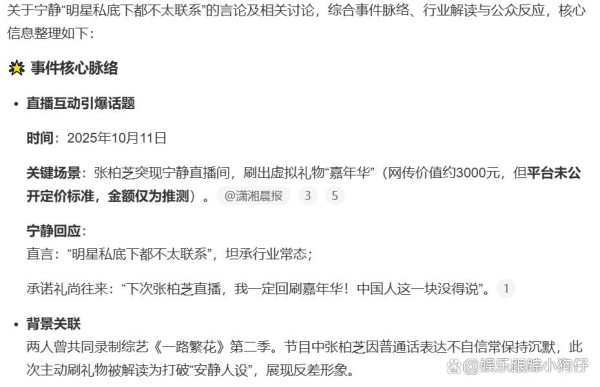 宁静直播间爆猛料!直言明星私下基本不联系宁静坦言明星私下联系少张柏芝送嘉年华礼尚往来令人感慨