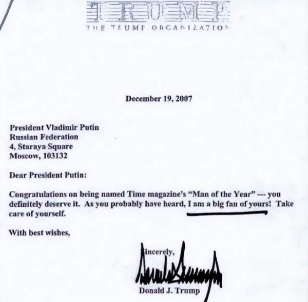 原来,早在2007年,普京登上全球时代周刊杂志的时候,特朗普就开始崇拜普京了。并且还写了3封亲笔信给普京。