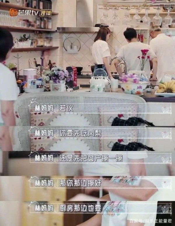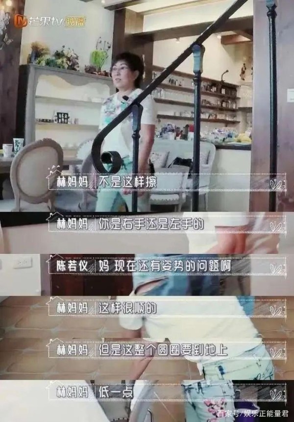 当饭后陈若仪想吃一根香蕉时,婆婆又适时地提醒她,吃完饭要去擦地了,并有一整套如何擦地的标准。当陈若仪擦完地想吃个凤梨的时候林妈妈又提醒她要擦窗户。全程下来陈若仪都胆战心惊,作为丈夫的林志颖呢?却又只是全程笑笑不说话,更别说为自己的妻子,哪怕说一句护妻的话语都没,真的是令人失望。