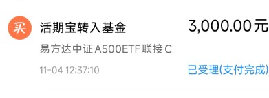 同学们,中证 A500 的 “回踩低吸” 机会来了!$易方达中证A500ETF联接C(OTCFUND|022460)$ 小沐今天加仓 易方达中证 A500ETF 联接 C 3000 元,就是看中它回踩后的布局价值!
