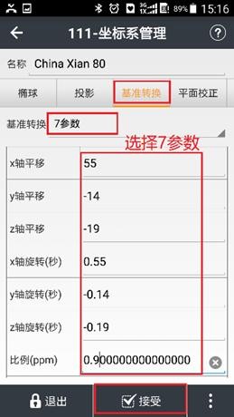 3、输入对应的七参数(该参数需使用gdcors中心提供的参数)-接受-确定