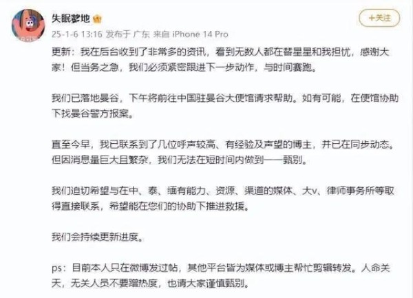 我们再回头看看事件发展。星星的最后一次发文就在抵达曼谷之前,而从那以后,他基本上失联了。据推测,现在他的自由已经完全被限制住。不过,也并非全无希望。目前,他女友已经火速赶往泰国,并联系到了当地的大使馆,同时还有律师事务所介入协助处理案件。有意思的是,当地一家律师事务所透露,上个月类似事件还发生过几起。所以你瞧,不止星星,其他领域的人也都成为这种骗局的新猎物。这事儿多可怕?