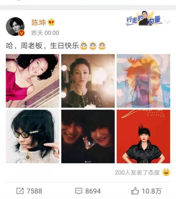 10月18日是周迅的生日,陈坤在0点发微博祝福周迅生日快乐。陈坤用了十年的微博,为周迅庆生10年,每年都不会缺席。