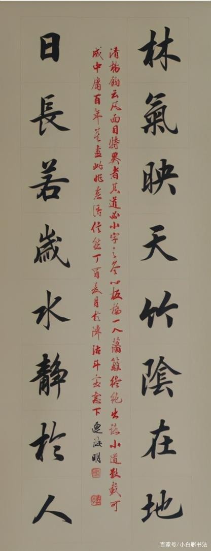 他的楷书,在用笔上别具匠心,而且很有心得体会,能够将古法和今人之长进行融会贯通,化为己用,这就是一项强大的能力,点画安排上很是精致,精心,精准,充分体现的这种规矩之美,整齐划一,对于年轻的书法家而言,能够做到这一点,可见他也曾下过一番苦功夫,点画之间还能够完美地诠释什么是“和谐统一”,这种和谐统一的思想,在他的楷书中体现得淋漓尽致,彼此间的照应非常周到,单从这些特点上看,他的楷书已经迈入了一流行列,你说呢?