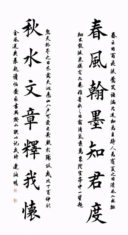 他不仅楷书精湛,其笔下的行书也写得相当有滋味,行云流水,美妙极了,在楷书笔法的影响下,其行书写得也非常中庸,既有楷书的笔意,又有行书的洒脱,写出了一番新气象,还荣获田蕴章诗文翰墨全国书法展特等奖,对于这位年轻的书法家的书法,分享你的见解。
