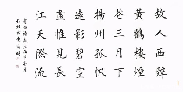 连海明,一位楷书的挚爱者,从他的楷书中,我们不仅能够看到传统书法的严谨法度,而且还能够看到他的融古化今的能力,从小热爱书法的他,对书法有着一种持久的爱,尤其是拜在了田英章老师的门下,其楷书水平如日中天,得到了长足的长进,他的楷书给人一种很稳重的感受,不仅楷书精到,其行书也非常洒脱飘逸,不愧为当今书坛里的翘楚,也正是由于他们这些年轻的书法家的存在,书坛才得以更加活跃。
