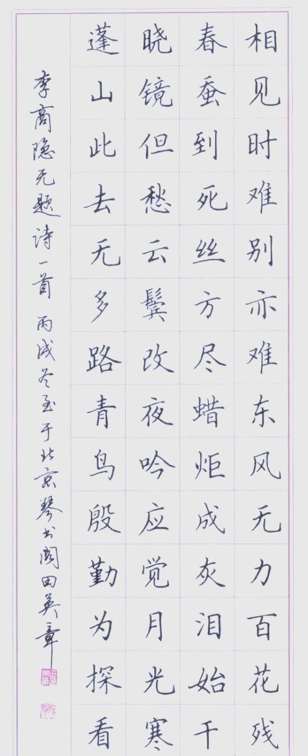 荆霄鹏,这位清华大学美术学院特聘的书法教师,以其卓越的书法技艺在硬笔书法界脱颖而出。他不仅担任了九年义务教育《写字》《书法》教材的范字书写者,更以软硬兼修的全才形象赢得了广泛赞誉。他的书法作品巧妙融合了毛笔的韵味与硬笔的特色,展现出高超的艺术水平。无论是楷书、行书,还是草书,荆霄鹏都能游刃有余,独树一帜。他的作品多次在全国书法大赛中获奖,充分证明了其在书法界的卓越地位。