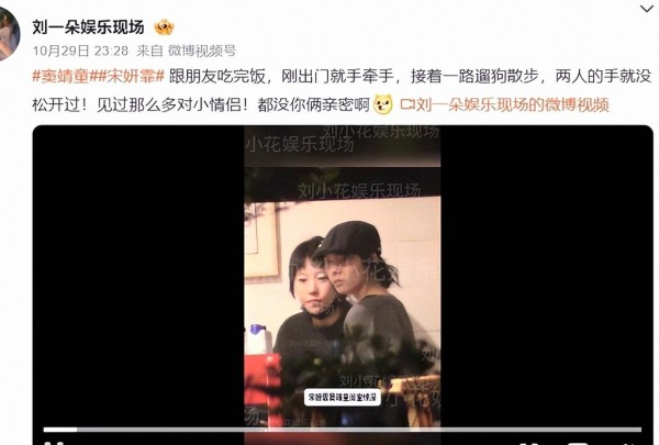 窦靖童、宋妍霏被八卦媒体拍到手牵手遛狗