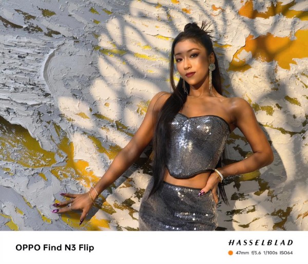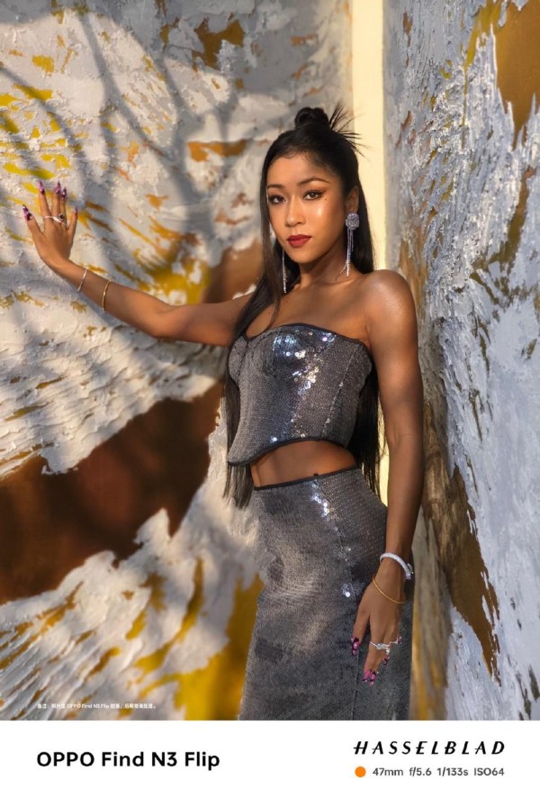 而此次笙笙拍摄的这组照片,是用手机OPPO Find N3 Flip拍的,这款手机上面拥有小折叠手机首次搭载的专业人像镜头,支持2X光学变焦,可呈现出47mm的黄金焦段,用来拍摄人像非常合适,从下面的实拍样张中,也可以看到照片非常地清晰自然,对于吉克隽逸的古铜色皮肤也做到自然还原,看上去很有感觉。